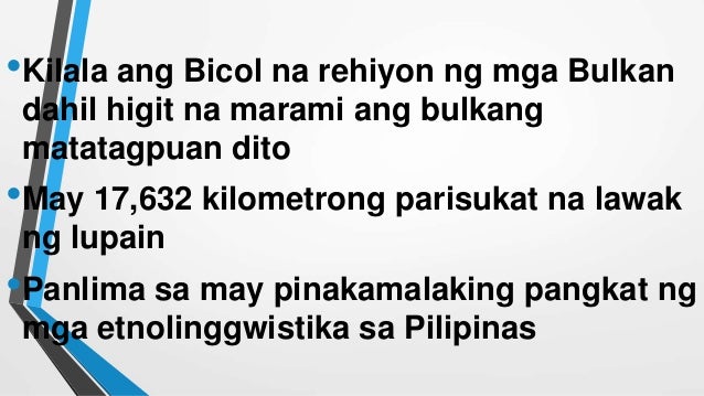 Tinitiyak namin na sa bawat Larawan at deskripsyon ng mga ito ay tiyak KAIIBIGAN niyo Ang Bicol ay isang lugar na makikita sa parte ng Luzon. Ito ay ginagamit sa hilaga at kanlurang bahagi ng lalawigan ng Camarines Sur sa ikalawang distrito pangkinatawan ng Camarines Norte silangang bahagi ng Albay hilagang-silangang bahagi ng Sorsogon sa bayan ng San Pascual sa Masbate at timog-kanlurang bahagi ng Catanduanes. Karamihan sa mga binibenta sa rehiyon ng Bicol ay gawa dito.