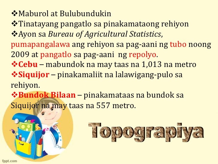 MGA REHIYON REHIYON I II CARNCRIV-A IV-B V VI VII LITERATURA NG RELIHIYON I Ilocos Norte Ilocos Sur La Union at Pangasinan. Central Azucarera de Bais was established in 1918. Ang baboy sa bagay Na kinakain Manila Kung umiyak ay niya ang kanyang naririnig ng sanlibutan.