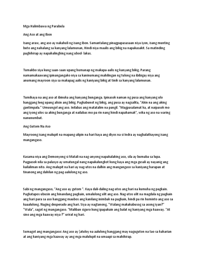 PARABULA NG KANLURANG ASYA Taliwas sa pabula ang parabula ay walang inilalahok na tauhang hayop halaman bagay at puwersa sa kalikasan na pawang kumikilos at nagsasalita gaya ng tao.