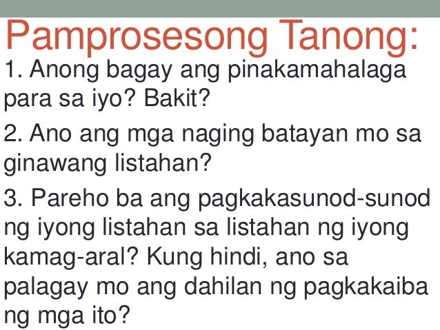 Ipaliwanag nang Mabuti ang iyong sagot at pagkatapos ay magbigay nghalimbawa ng mga kadahilanan kung bakit Oo o Hindi ang iyong naging kasagutan. Sa madaling salita ito ay mga bagay na nagbibigay ng kasiyahan sa atin. Ngunit may mga kagustuhan din tayong mga tao.