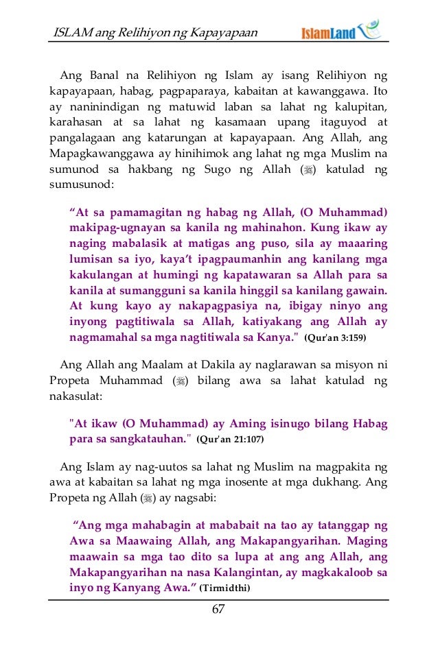 Mga bagay na nagpapakilala sa mga muslim. Pagmamano Ito ay madalas ginagawa ng mga nakababata sa kanilang mga magulang o sa mga nakatatanda sa kanila. To connect with Mga bagay na dapat matutunan sa islam join Facebook today. Shahadah pananalig 2salat pagdadasal ng limang beses sa isang araw 3Zakat paglimos at pagtulong sa kapwa 4sawm pag-aayuno 5Hajj paglalakbay sa mecca Ayon sa Koranang sinumang magkasala ay ngakakasala sa kanyang sarili Pwedeng mag asawa ng higit sa.